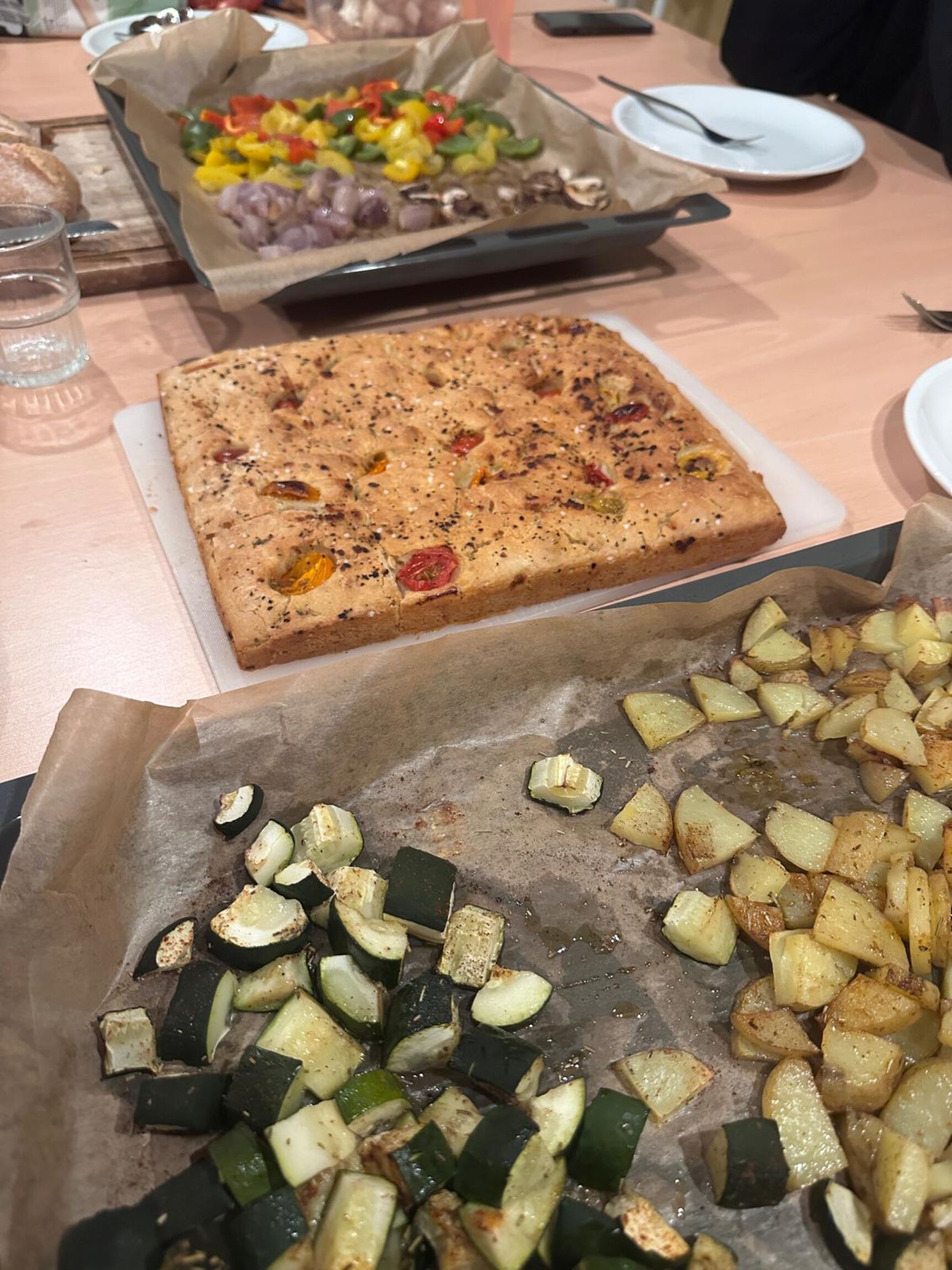 Am 01.10. haben wir uns zu unserem monatlichen JMK-Treffen im Jugendraum der Trinitatiskirche getroffen. Gemeinsam haben wir den zu diesem Zeitpunkt bevorstehenden Werwolf-Abend noch einmal besprochen und erste Ideen für die nicht mehr weit entfernten Weihnachtsaktionen festgehalten. Anschließend haben wir zusammen gegessen, jeder hat ein wenig geschnippelt, sodass wir leckeres Ofengemüse zubereitet haben. Und eine leckers selbstgebackenes Focaccia gab es auch noch.